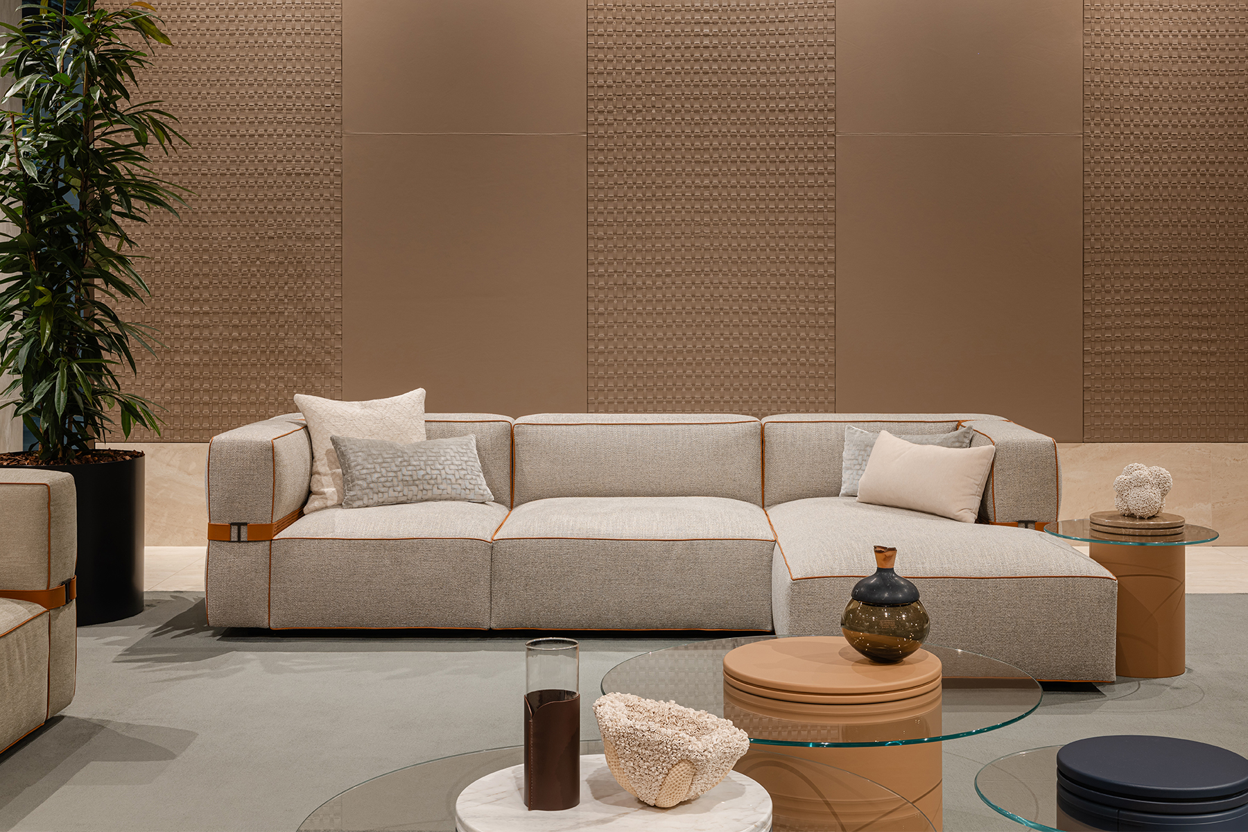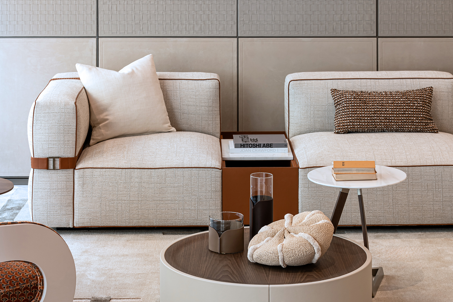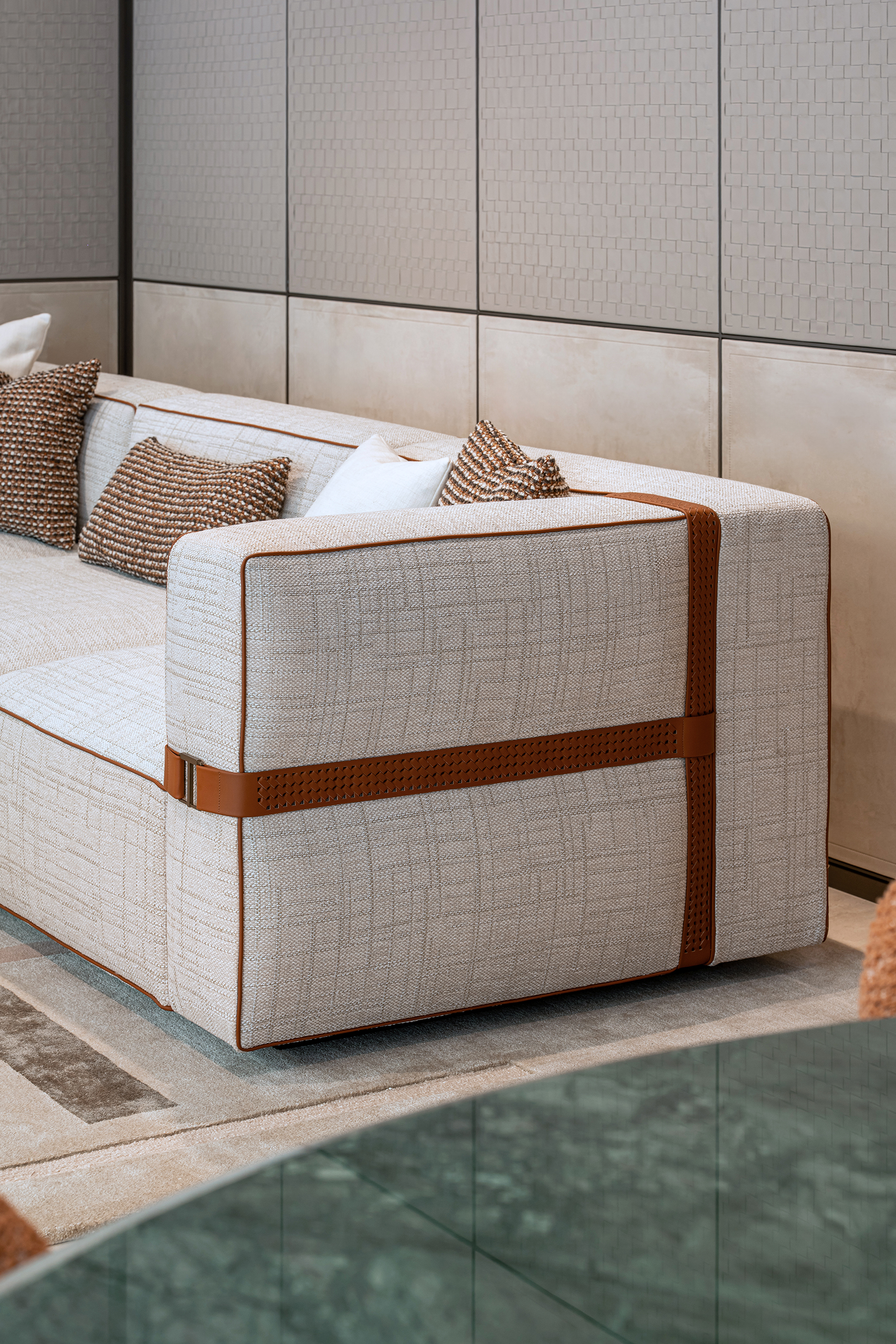Inspiriert vom geflochtenen Ledergürtel – einem Symbol der handwerklichen Tradition der Marke – entsteht die B.E.L.T.-Kollektion von Turri, entworfen von Matteo Nunziati. Der „Gürtel“, das Ergebnis meisterhafter Lederverarbeitung, stellt das charakteristische Element des gesamten Projekts dar: ein Detail, das das Sofa in eine zeitgenössische Lösung verwandelt und das handwerkliche Können der Manufaktur auf moderne Weise neu interpretiert.