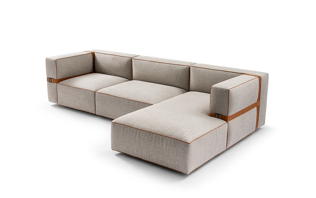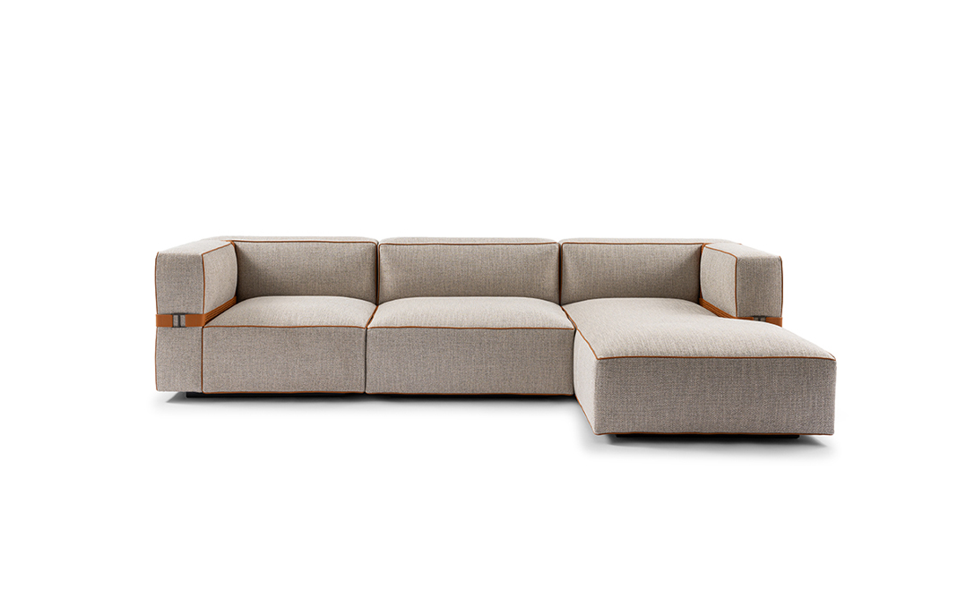 Belt and piping: belt in smooth or woven leather with tone-on-tone stitching. Metal buckle in Forge, The Touch and Allure collections have an increase in price. Only on armrests. Piping coordinated with the belt.