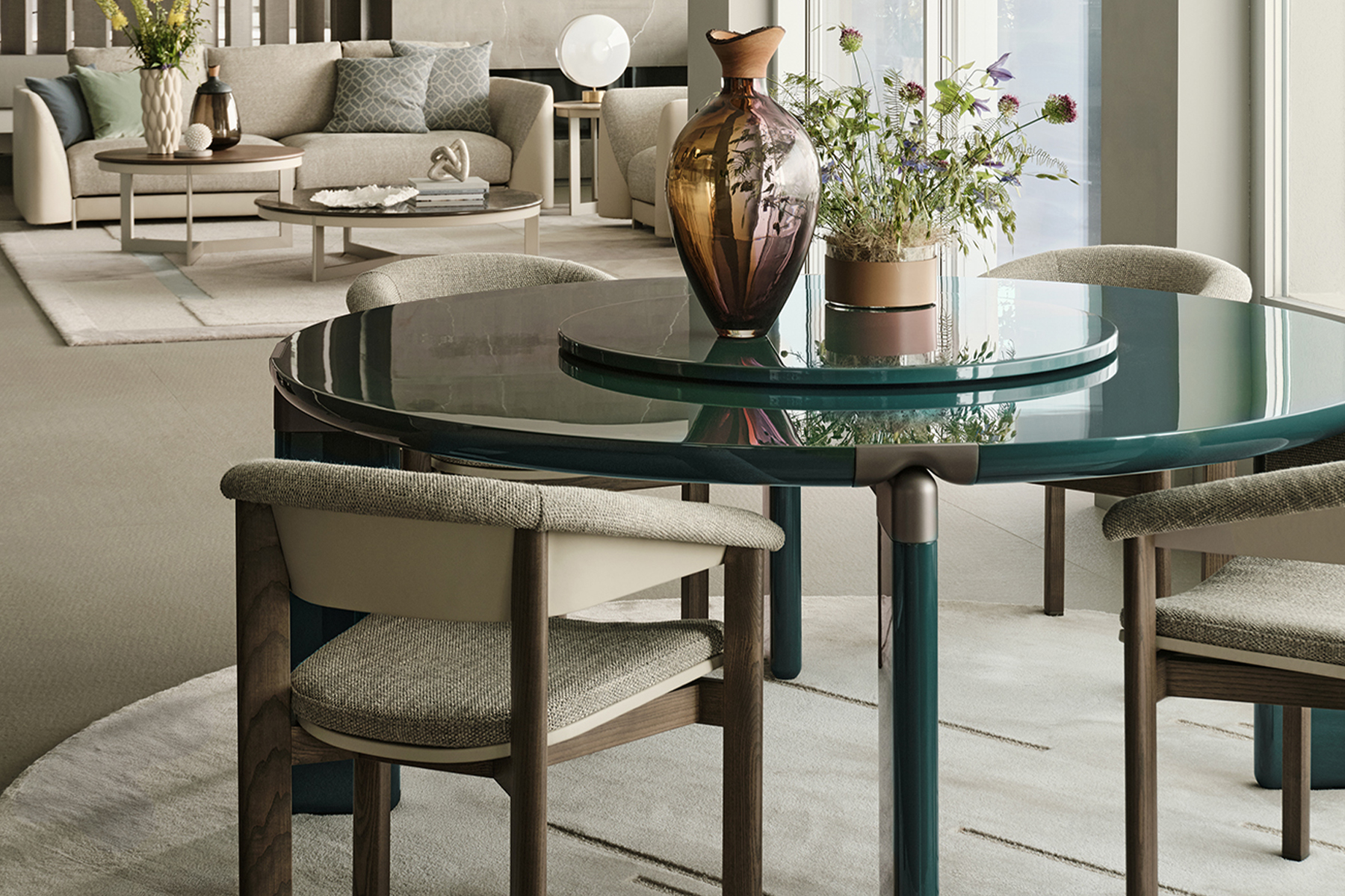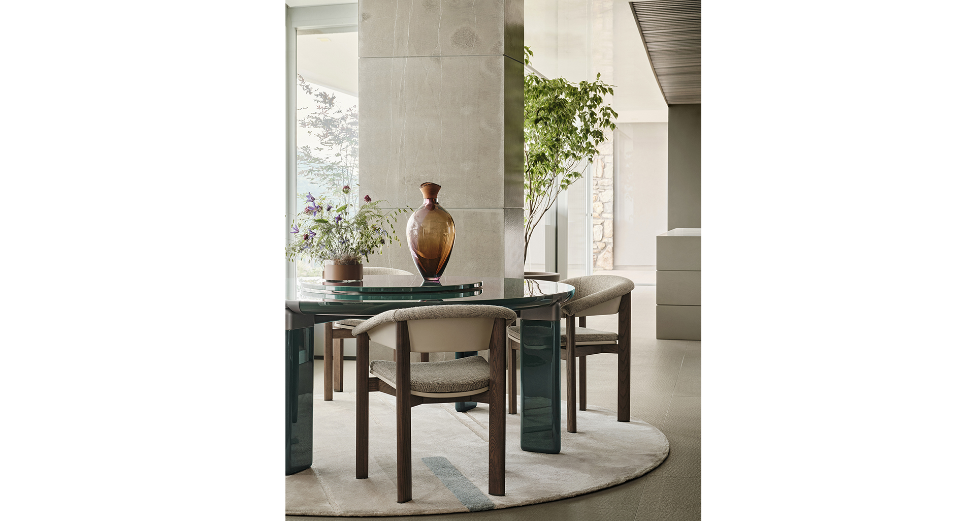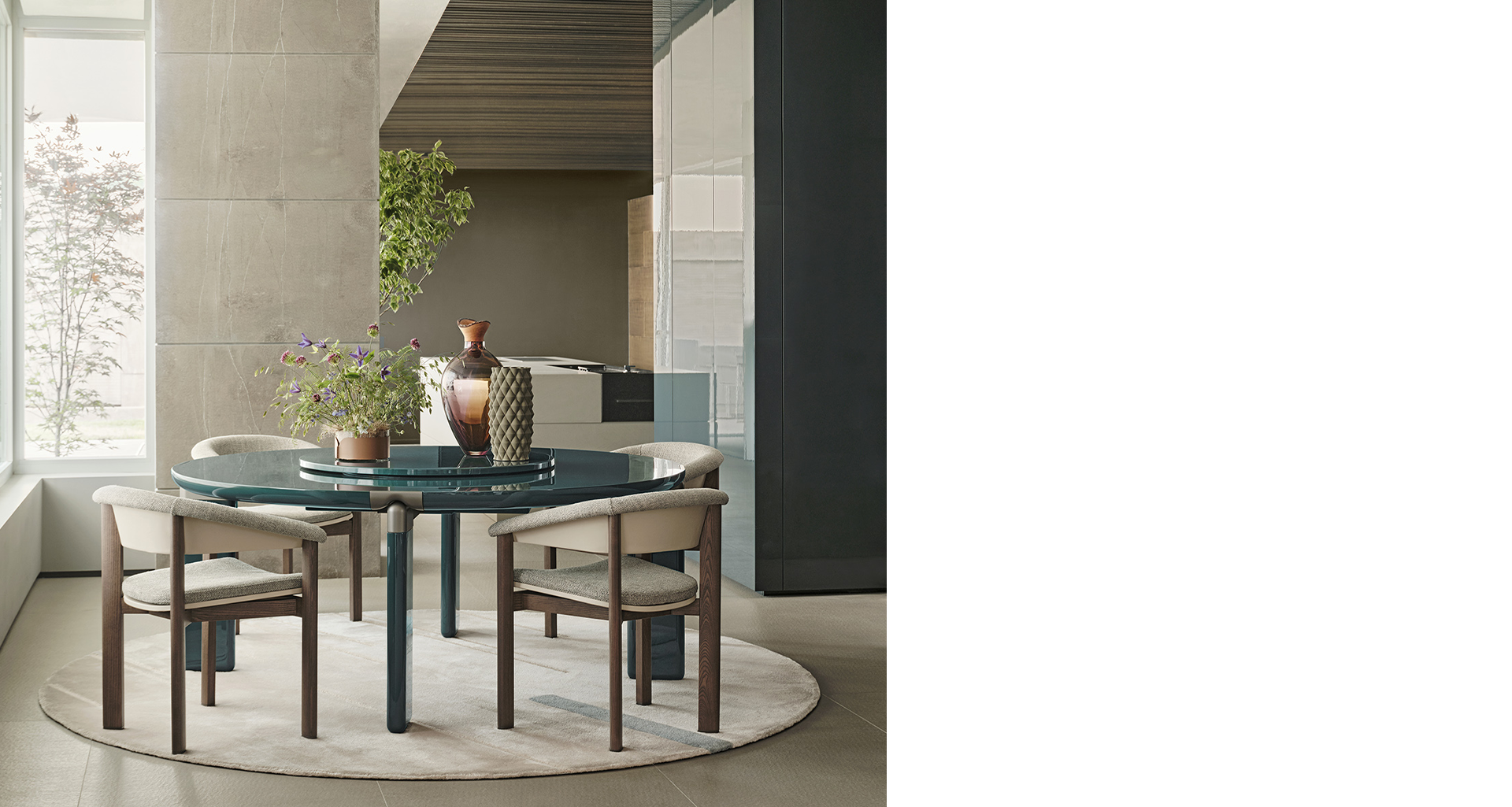 Kenobi es una mesa que juega con las fuerzas opuestas de la materia, combinando solidez estructural con suavidad visual. Fruto de la primera colaboración de Marco Acerbis con Turri, este producto nace del encuentro entre volúmenes generosos y líneas cónicas: la silueta circular o rectangular, las generosas dimensiones y la cuidada selección de materiales se combinan para transmitir la evolución estilística de la marca, que sigue destacando por su savoir-faire.