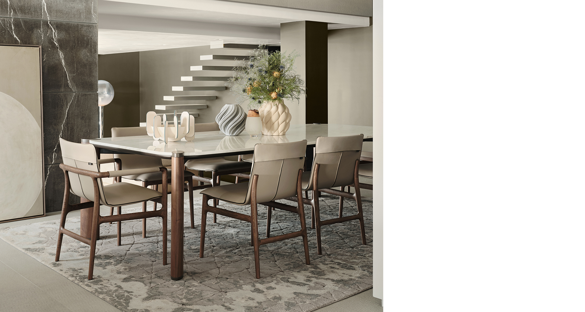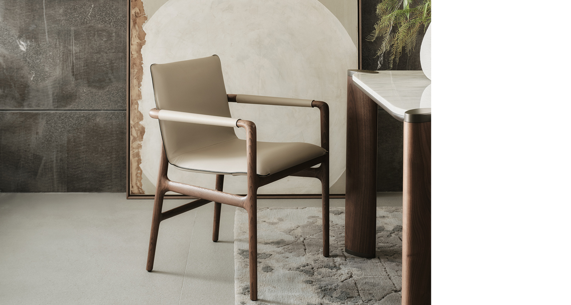 Con Nabi, diseñado por Marco Acerbis, el simple acto de sentarse se convierte en una reflexión diaria sobre la comodidad y la practicidad, aspectos clave de este tipo de mobiliario. Su juego de líneas y proporciones trasciende las convenciones tradicionales, ofreciendo una nueva experiencia de relajación y ligereza, común tanto en el comedor como en la sala de estar. La estructura en forma de L de Nabi presenta un asiento y un respaldo unidos en una única forma fluida, creando un flujo coherente de espacios y superficies que se integran a la perfección. La elección de una forma simple pero claramente definida no es meramente estética: la elegante estructura y el diseño esencial, sin invadir el espacio circundante, ofrecen una sensación de ligereza que invita a sentarse.