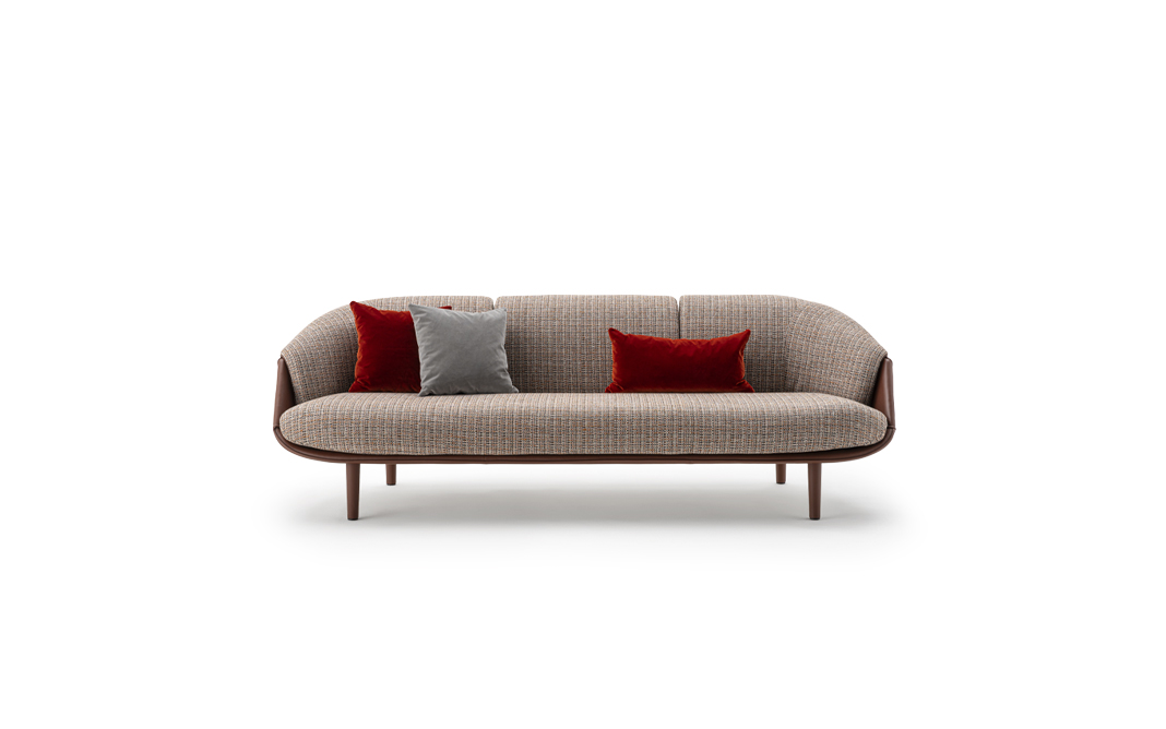 La búsqueda de lo contemporáneo del sofá Riban se revela en un juego de superficies y giros en los que el exterior se convierte en el interior, el respaldo se vuelve asiento y los materiales se alternan de una forma tanto orgánica como lógica. El sofá Riban está fabricado con una carcasa exterior de cuero, los cojines del asiento y del respaldo están disponibles en tejido en contraste. El botón que conecta los cojines a la estructura es un detalle típico tradicional interpretado en clave contemporánea. El sofá Riban está disponible en versión de dos, tres o cuatro plazas.