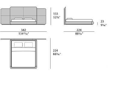 Cover: non-removable in leather or fabric. Available with smooth or embroidered side panels.
