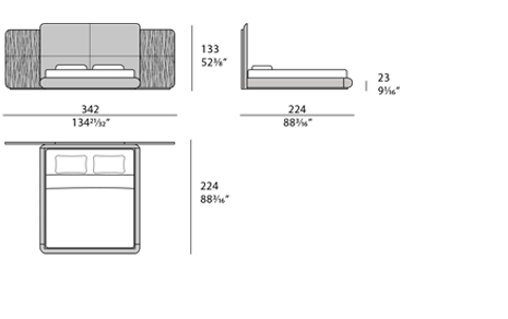Les ailes latérales du lit Roma peuvent être brodées, dans la texture caractéristique de la collection, ou unies. Il peut être positionné comme pièce maîtresse de la pièce en ajoutant un panneau arrière.