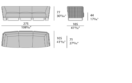 Rivestimento: struttura in pelle o tessuto non removibile. Rivestimento cuscinature in pelle o tessuto removibile. Pannelli struttura in pelle liscia o intrecciata. Nella versione con pannelli lisci è disponibile il rivestimento in tessuto.